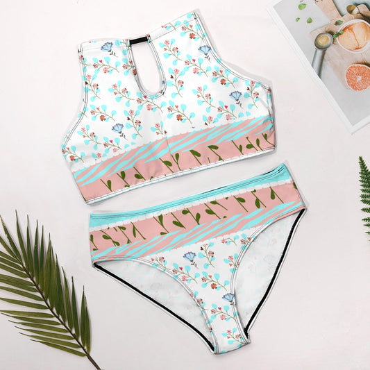 Dark Blue little flowers Halter Bikini Swimwear. Miami Collection