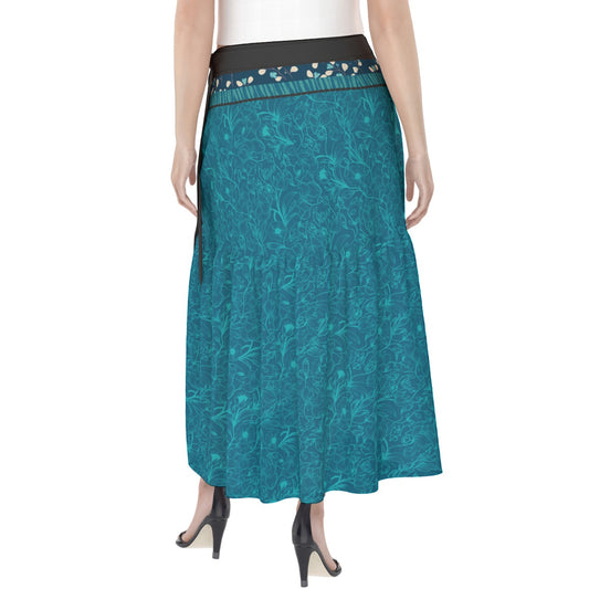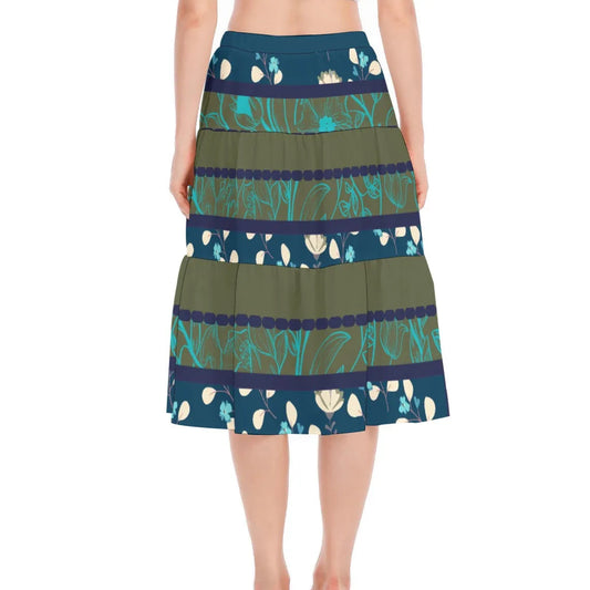Green and Blue Stitched Pleated Chiffon Skirt. Miami Collection