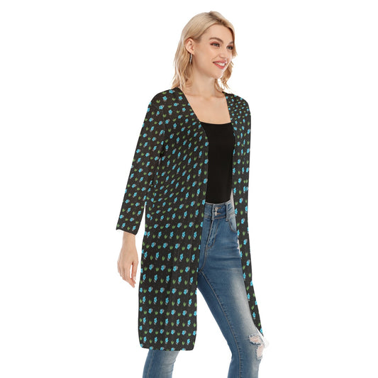 Little Blue Flowers V-neck Mesh Cardigan. Mesh Kimono. Design hand-painted by the Designer Maria Ale