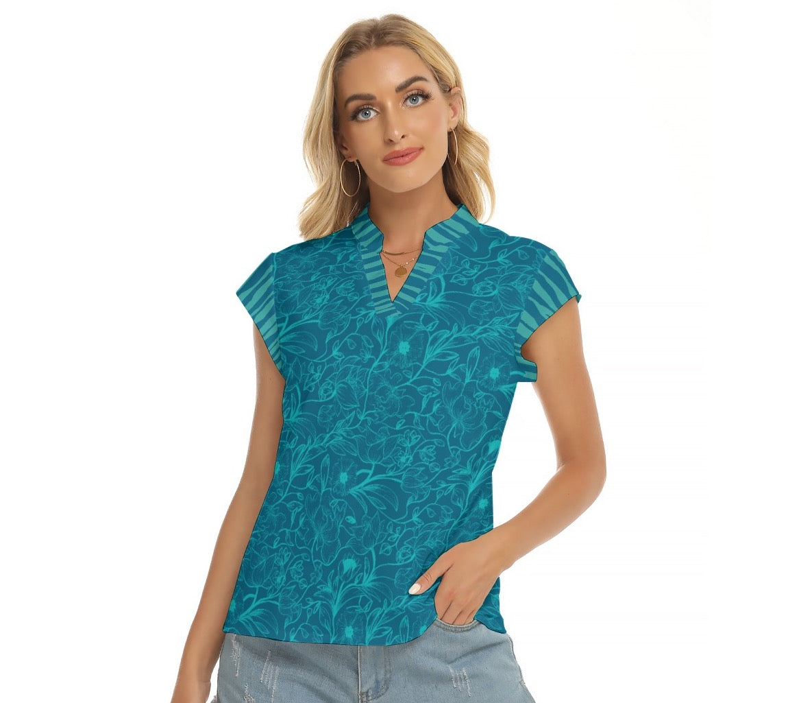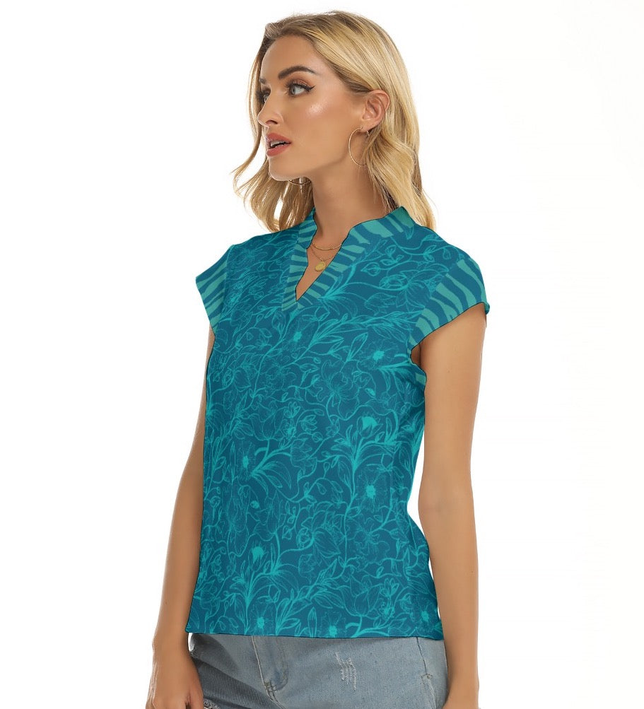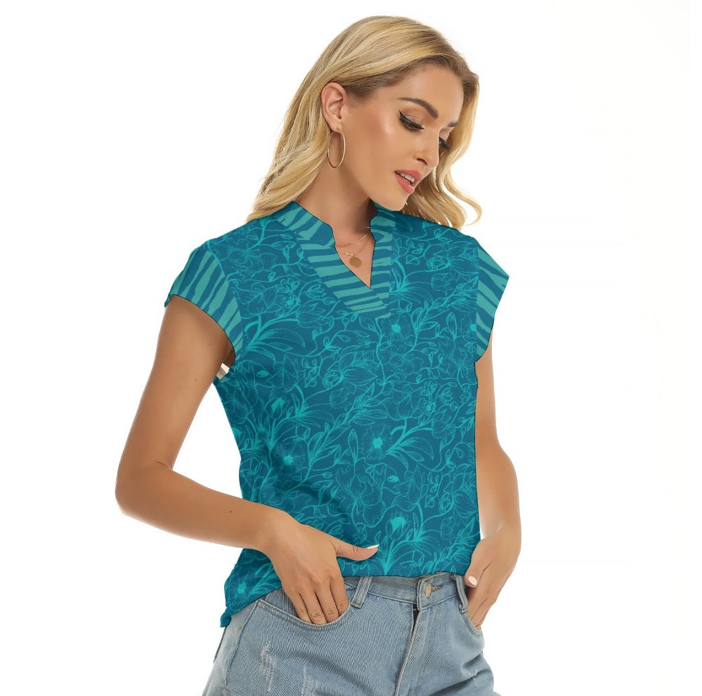 Blue and celeste flowers V-neck Shirts. Miami Collection