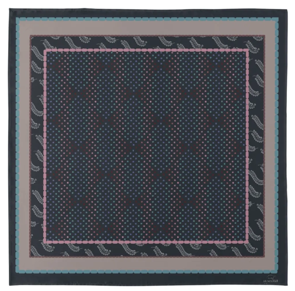 Indulge in the luxurious elegance of our square dress, meticulously crafted from skin-friendly fabrics that not only provide warmth but also elevate your style as one of the most essential accessories for women. Versatile and chic, these scarves can be effortlessly paired with suits, coats, and T-shirts, or worn as bandanas, handkerchiefs, headbands, and more. Perfect for any occasion, they add a touch of sophistication whether you're outdoors or indoors. Each scarf features a unique pattern, hand-painted by our talented designer, Maria Alejandra Echenique, and digitally printed onto the finest silk. This ensures every piece is a work of art, radiating exclusivity and charm. Sustainable and Thoughtful Creation: Our scarves are made especially for you upon order, which may extend delivery times but underscores our commitment to sustainability. By producing on demand rather than in bulk, we help reduce overproduction, contributing to more thoughtful purchasing decisions. Care Instructions: - Machine wash cold with similar colors - Do not bleach - Tumble dry low - Do not iron - Do not dry clean Wrap yourself in the luxury of MundoE&E and experience the enchanting allure of our bespoke silk scarves.