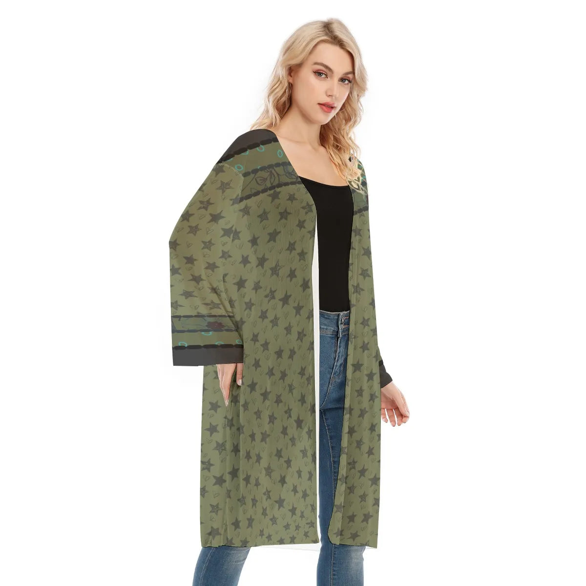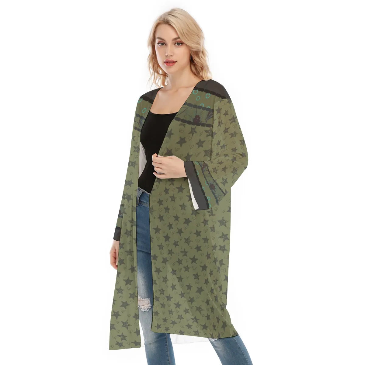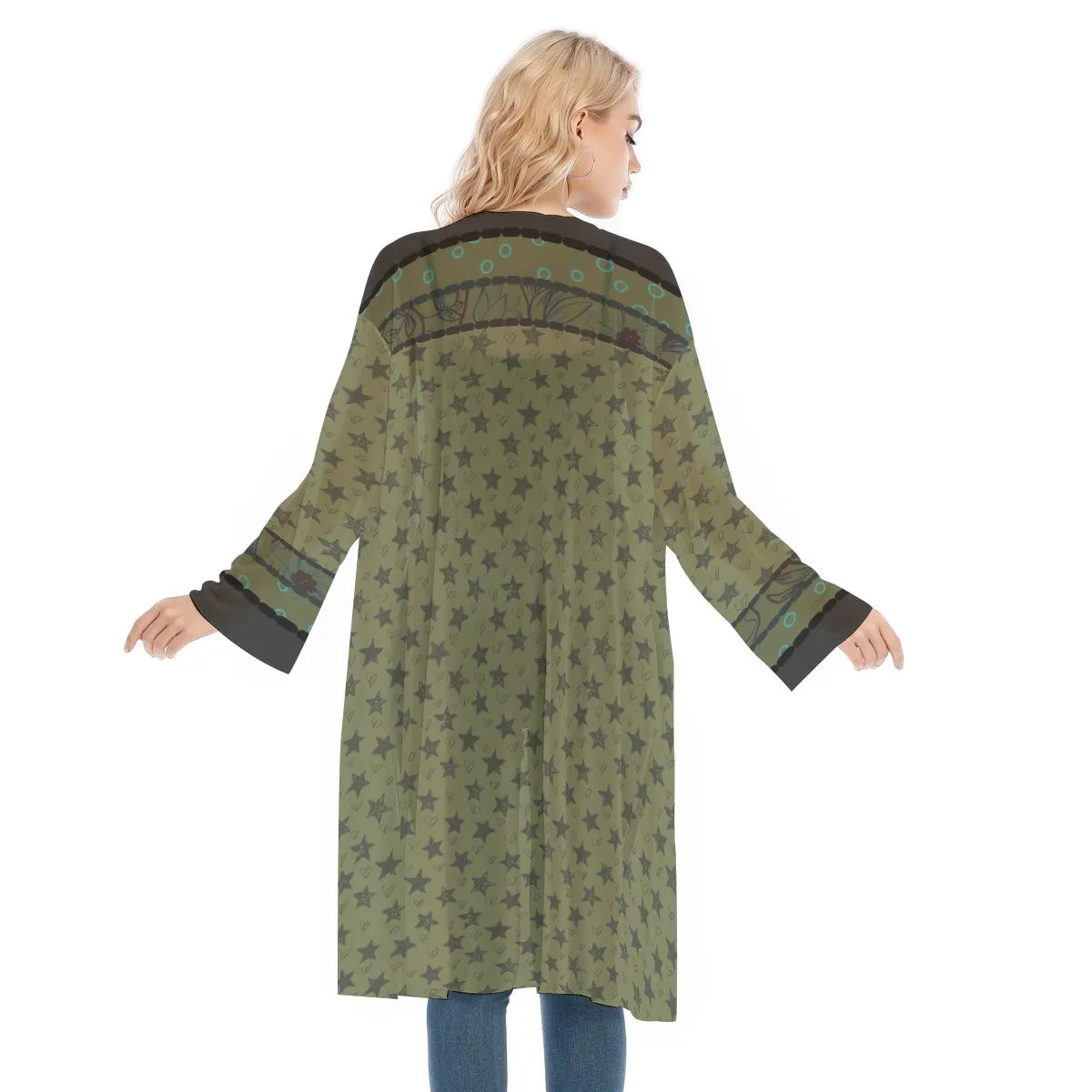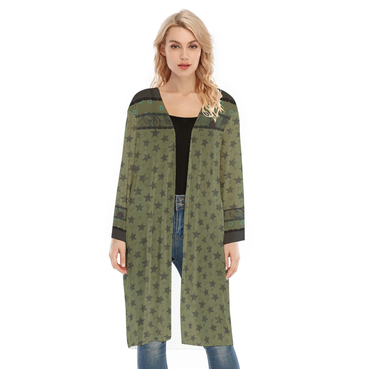 Green and Black Collage Long Sleeve Mesh Cardigan. Miami Collection