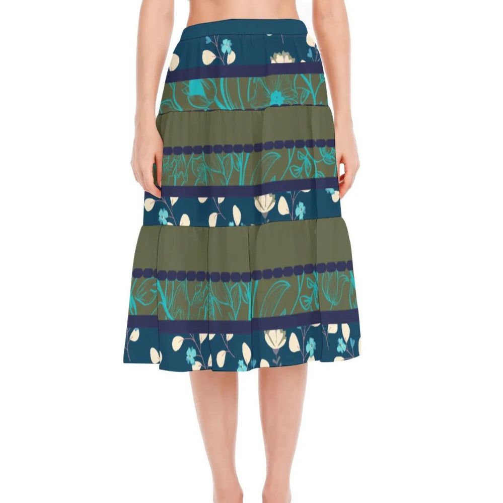 Green and Blue Stitched Pleated Chiffon Skirt. Miami Collection