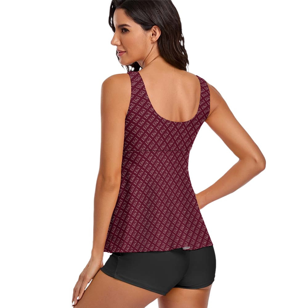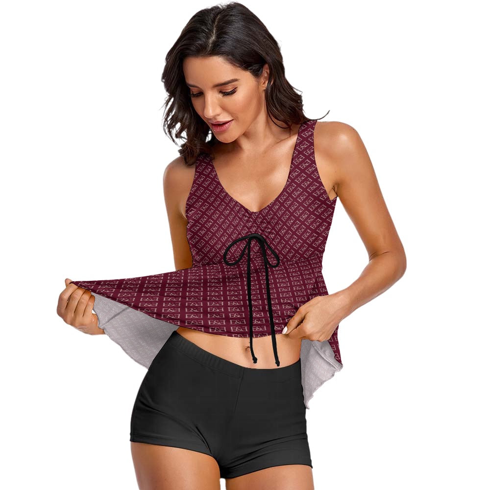 E&E Signature Red-wine Sleeveless Comfortable Split Swimwear. Bathing Suit. Cover-up.